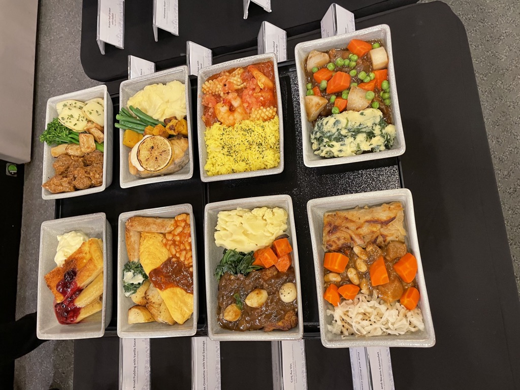 Die hier gezeigten Gerichte der PE sind aber deutlich umfangreicher und besser präsentiert als das, was man bei vielen westlichen Airlines in deren Business serviert bekommt. Auch wenn es über Book the Cook „nur“ max. 18 Gerichte gibt und nicht wie oben geschrieben 20.