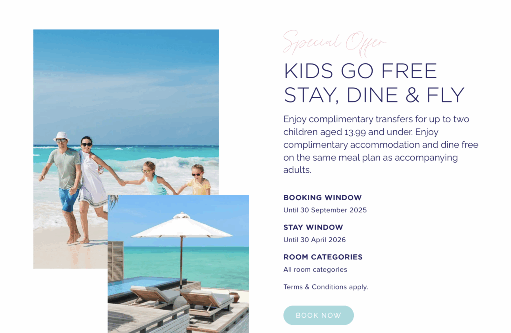 Diese Aktion gilt für Buchungen bis 30.9. 2025 für Aufenthalte bis Ende der kommenden Malediven-Saison!