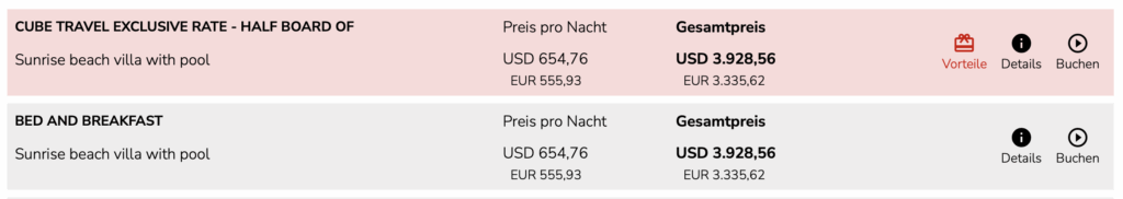 Durch die Buchung einer Preferred Partner Rate, die es nur bei ausgewählten Reiseberatern wie Frankfurtflyer Hotels gibt, spart Ihr Euch den Aufpreis für die Halbpension, denn es gibt die Halbpensionsrate zum gleichen Preis wie die Rate mit Frühstück ohne Frankfurtflyer Hotels Vorteile.