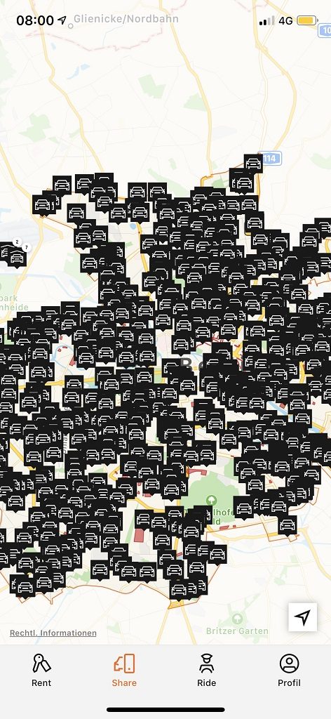 Übrigens: Der Sharingdienst eignet sich auch wunderbar für die An- bzw. Abreise zu den Berliner Airports Tegel und Schönefeld. Sicher in vielen Fällen die komfortablere und schnellere Alternative gegenüber S-Bahn etc.!