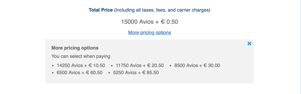 • 8.500 Avios und 30 Euro = 60,60 Euro Flugpreis