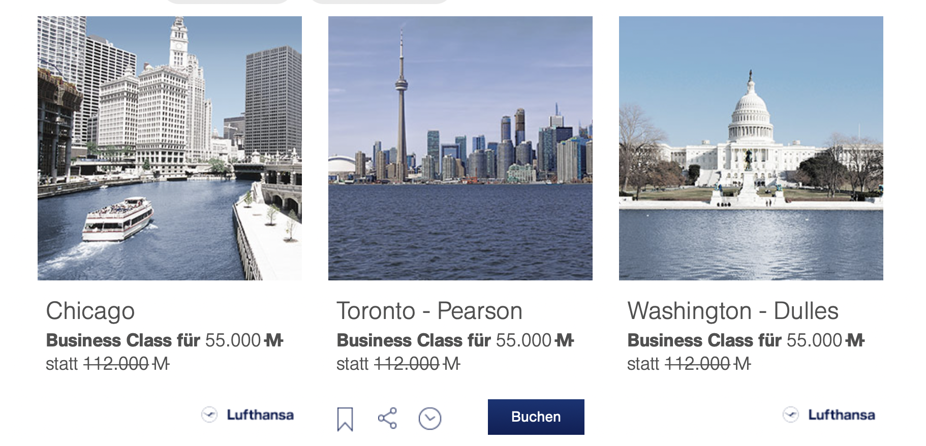 In den Lufthansa Meilenschnäppchen im Januar 2022 gab es hier unter anderem wieder viele Ziele in Nordamerika, wie Chicago, Denver, Montreal, Vancouver, Toronto und Washington D.C. in der Lufthansa Business Class für 55.000 Meilen für den Hin- und Rückflug.