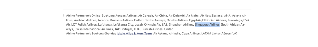 Eines der ersten wichtigen Dinge, die man über Meilen lernen muss ist, dass man mit Miles&More Meilen (gerne auch „Lufthansa Meilen“ genannt) nicht nur Prämienflüge bei Lufthansa buchen kann, sondern bei einer ganzen Reihe anderer Airlines. Dazu gehören auch alle Star Alliance Airlines und damit natürlich auch Singapore Airlines.