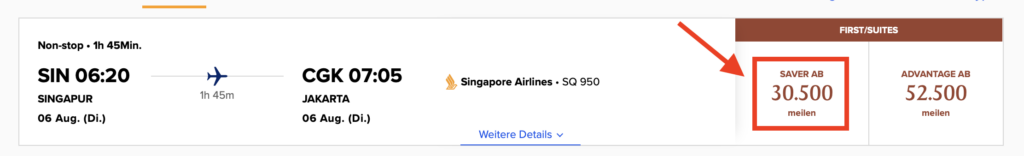 Verfügbarkeiten lassen sich nur bedingt vorher abfragen, da auch Air Canada die Singapore Airlines First Class Awards nicht mehr anzeigt (und wohl auch nicht mehr buchen kann). Daher empfiehlt es sich vorab bei Singapore Airlines selbst zu schauen und wenn man einen First Saver Level Award findet, kann es mit etwas Glück auch bei Miles&More diesen Sitz geben. Man wird hier aber auch bei Singapore Airlines feststellen wie selten diese Saver Awards sind.