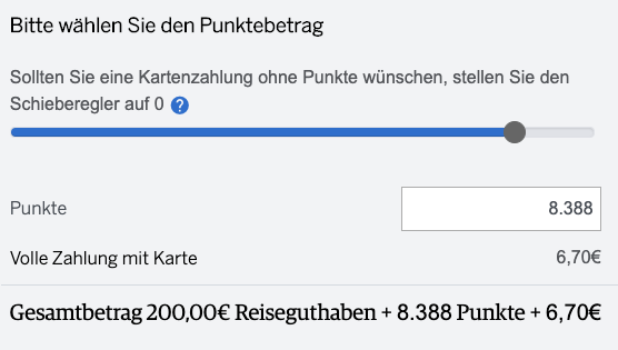 Den restlichen Betrag von 48,64€ kann man mit Punkten oder einem Mix bezahlen: