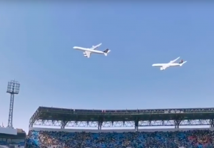 Formationsflüge mit Passagierflugzeugen habe ich schon mehrfach gesehen, dass aber gleich zwei Airbus A340 in enger Formation fliegen, ist extrem spektakulär. Besonders der tiefe Überflug über die Massen im Stadium in Pretoria müssen extrem beeindruckend gewesen sein.