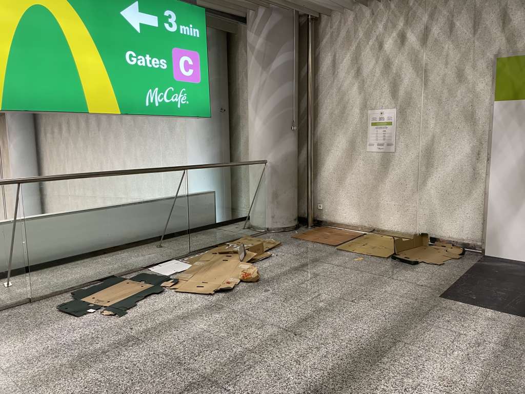 Wir landeten um 21:55 Uhr von Münster kommend auf der Insel von Mallorca. Statt Spurt zum Gate des Anschlussfluges konnte ich einen Stopp in der Formentor Lounge einlegen, die in der Saison glücklicherweise bis 24 Uhr geöffnet hat. Auch wenn der Betrieb am Flughafen wieder lief, bemerkte man an einigen Stellen noch die Unwetterschäden. An verschiedenen Stellen tropfte das Wasser und Pfützen verteilten sich über den Boden. Das Terminal war auf Grund der vielen Verspätungen und Stornierungen so stark bevölkert, wie sonst nicht zu dieser Uhrzeit. An vielen Ecken saßen Passagiere auf dem Boden versuchten, die Zeit totzuschlagen.
