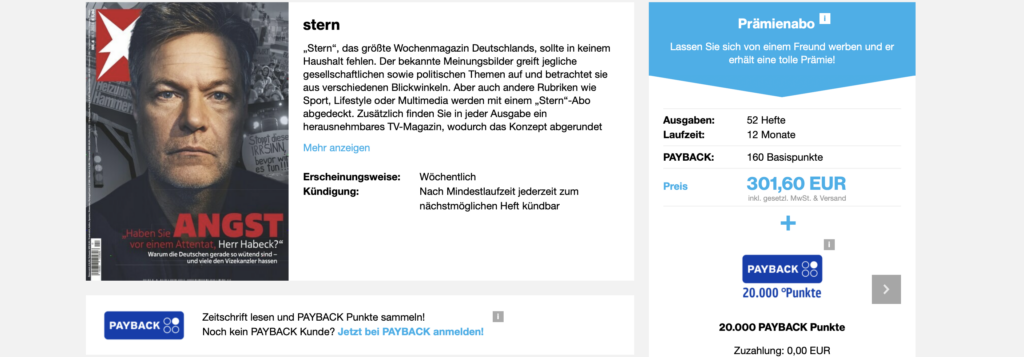 Stern Abo mit 20.160 Payback Punkten (bis zu 25.200 Miles&More Meilen) | Frankfurtflyer Kommentar
