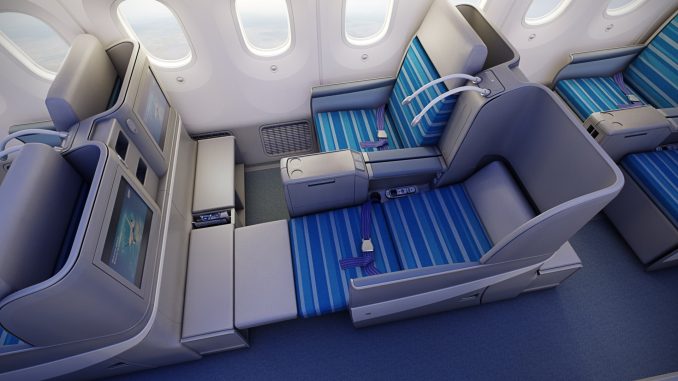 In der Premium Economy Class sind bequeme Sessel in einer 2-3-2 Bestuhlung verbaut. In der Boeing 787-9 haben diese einen Sitzabstand on 42 inch (106cm), was 4inch mehr sind, als in der 787-8. Hiermit bietet man eine der großzügigsten Premium Economy Class Sitze auf dem Markt.