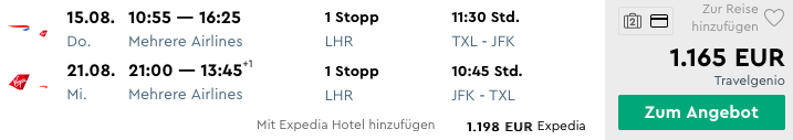 - New York ab 1.165 Euro