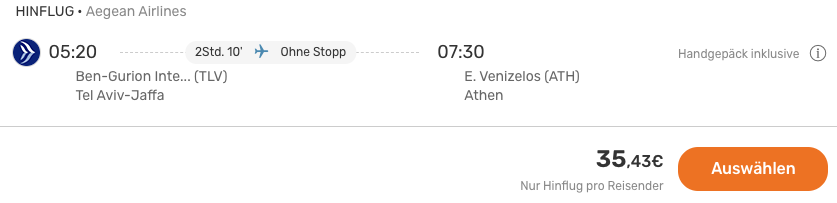 Der Flug ist generell sehr günstig zu haben, dank des laufenden Geburtstagsangebotes könnt Ihr die Strecke TLV-ATH derzeit schon ab 35€ buchen! Das Offer ist noch bis Sonntag gültig, die kräftigsten Ersparnisse gibt es mit Abflug ab 15. Januar 2024 – quasi passend zum Programmstart.