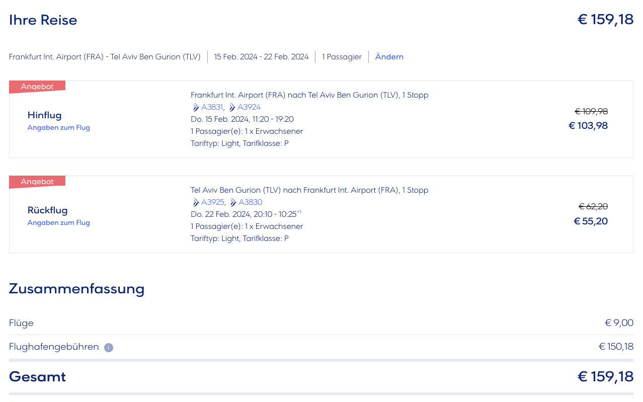 Den ganzen Roundrip FRA-ATH-TLV-ATH-FRA bekommt man übrigens ab ca. 160€. Der generiert 160 Statuspunkte. Ich werde das Routing mal mit aufnehmen.