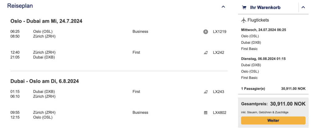SWISS First Class ab 2.600 Euro nach Dubai (Hin- und Rückflug via Oslo) | Frankfurtflyer Kommentar