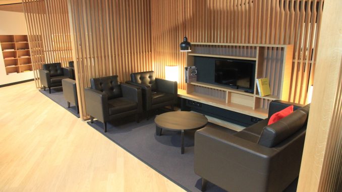 Die Swiss First Class Lounge in Genf wurde nun in das aktuelle Swiss Lounge Design versetzt, wie man es bereits aus Zürich kennt. Damit sind die alten schweren Ledersessel verschwunden und man hat viel Holz in der neuen Swiss First Class Lounge in Genf verbaut.