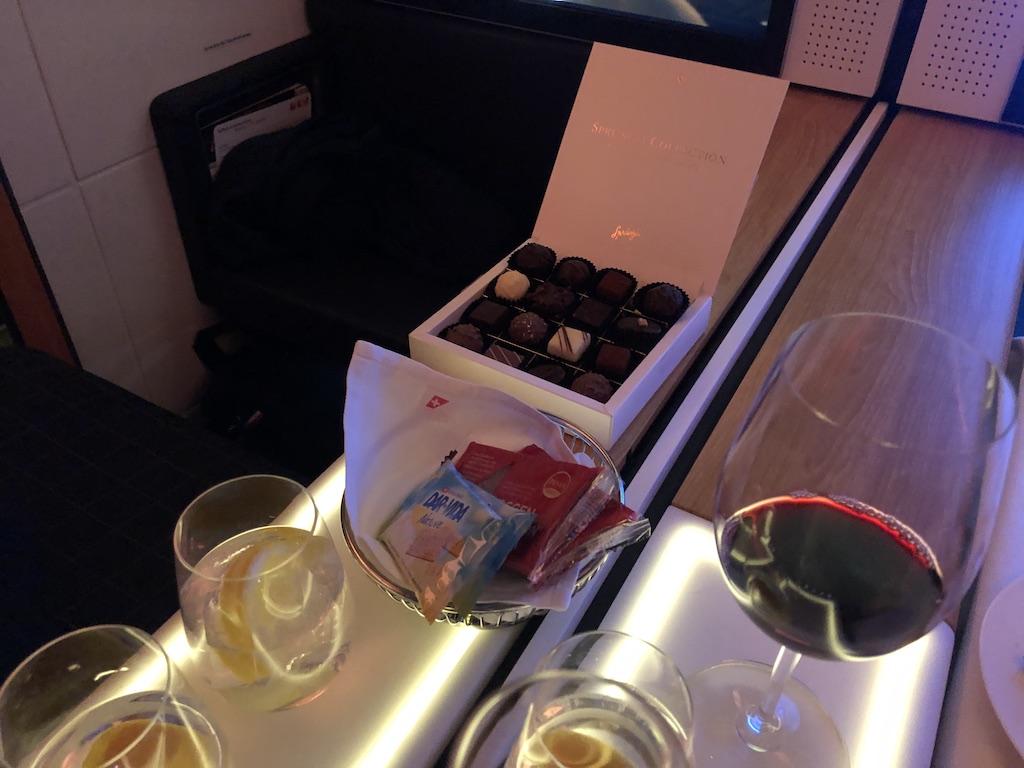 Die Swiss First Class bietet ein Höchstmaß an Komfort. Angefangen am Boden mit eigenem Check in, bevorzugtem Service oder der fantastischen Swiss First Class Lounge. Es lohnt sich genügend Zeit zum Umsteigen in Zürich einzuplanen um das besondere Erlebnis auskosten zu können.