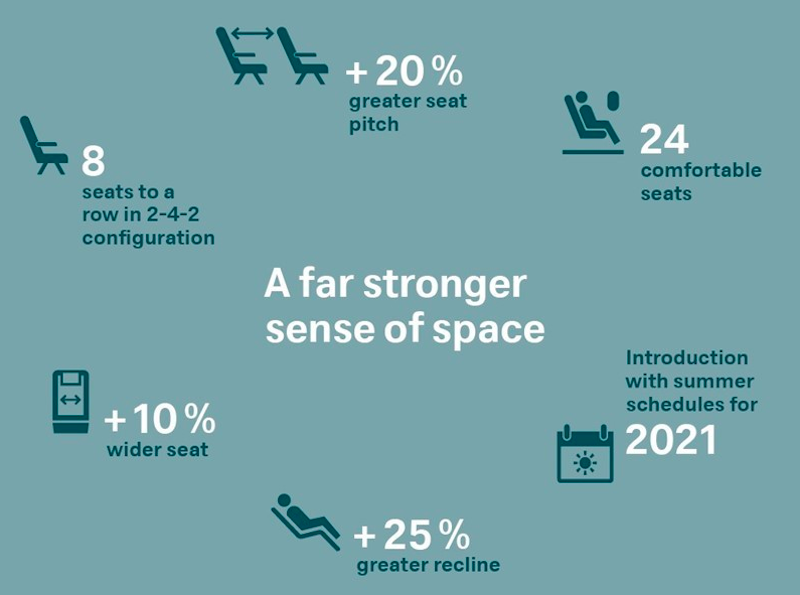 - Die Sitze werden 10% breiter sein als die Economy Class Sitze