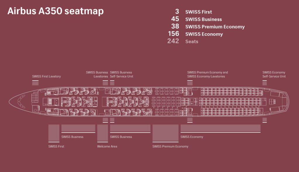 - Effizienz und Komfort: Der A350 ist 25% effizienter und wird mit dem neuen Swiss Senses Produkt ausgestattet.