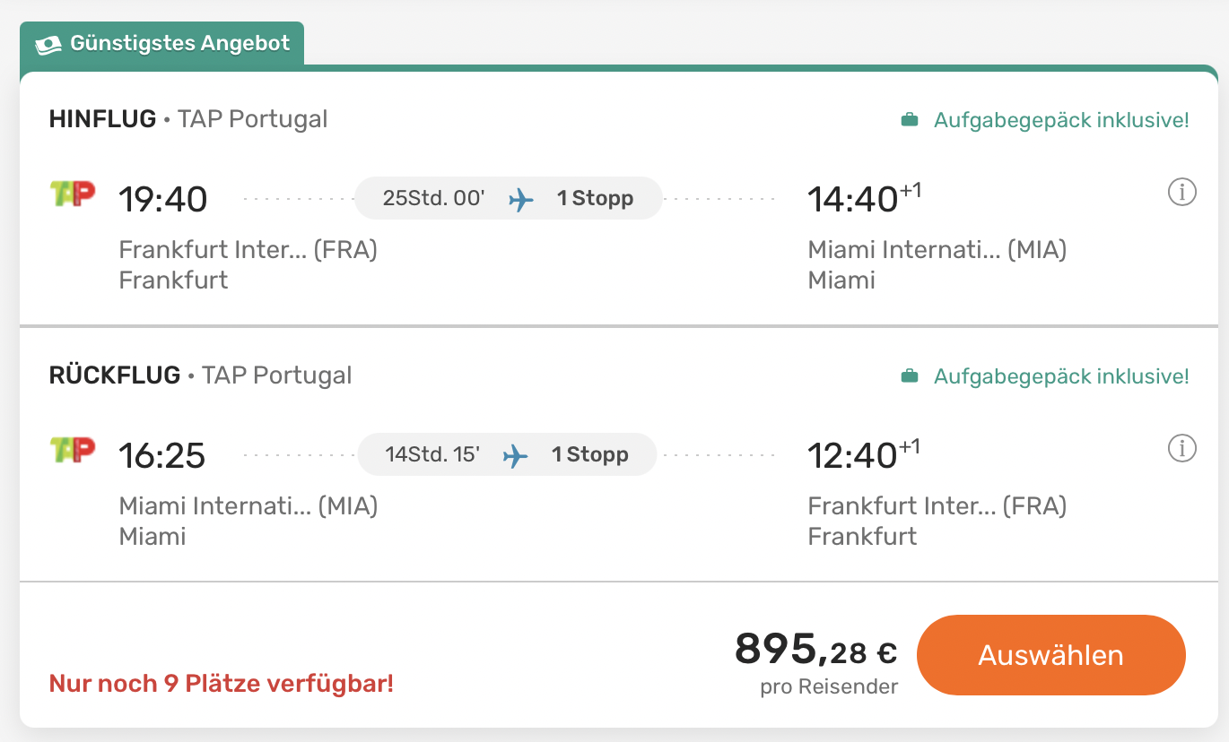 Dabei lassen sich gleich sechs Ziele von TAP über Lissabon für unter 1.000 Euro erreichen, was sich kaum unterbieten lässt. Gerade mit Abflug direkt in Frankfurt haben wir dies eigentlich noch nie gesehen, weshalb ich nicht zu lange mit der Buchung warten würde, da solche Tarife schnell verschwinden können.