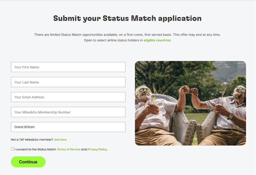 Hier könnt Ihr den TAP Miles & Go Statusmatch beantragen.