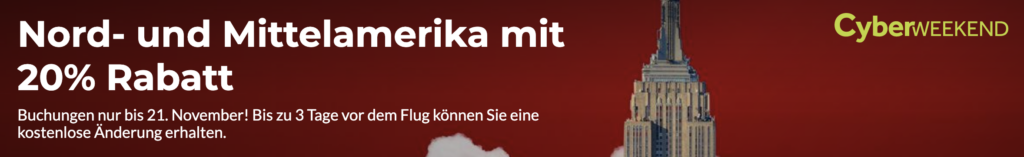 Vereinigte Staaten, Kanada, Mexiko oder die Dominikanische Republik? Buchen Sie jetzt Ihren Hin- und Rückflug mit 20% Rabatt.