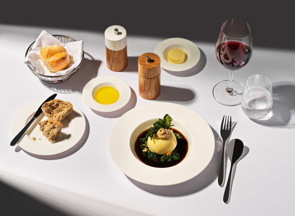 • Hauptgerichte: Kalbsbäckchen mit Cremolata, Kirschjus und Mascarpone-Polenta oder sautierter Kabeljau mit Chimichurri, cremiger Fregola sarda und gebratenem Herbstgemüse