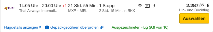 Dieses Thai Airways Business Class Angebot ist an sich schon sehr interessant. Business Class Flüge von Europa nach Australien und Neuseeland kosten häufig mehr als das Doppelte. In Verbindung mit den vielen Meilen bei Miles&More, oder einem Star Alliance Gold Status bei SAS Eurobonus wird dieses Angebot doppelt attraktiv.