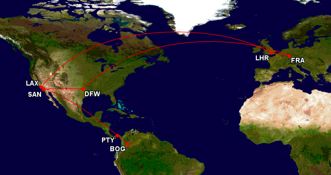 Bis auf den letzten Flug von London Heathrow nach Frankfurt, welcher von British Airways durchgeführt wurde, waren alle anderen Flüge des 1. Tickets mit American Airlines.