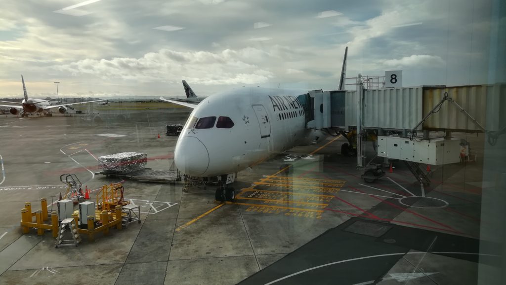 Besonders erstaunlich, es gab keine Sicherheitskontrolle. Warum allerdings die Flugbegleiter der Air New Zealand nach dem Boarding die geschlossenen Gepäckfächer mit einem Spray behandelten, hat bei mir bis heute keine Erklärung gefunden (vielleicht Biosecurity). Hatte das bisher noch nie auf einem Flug erlebt.