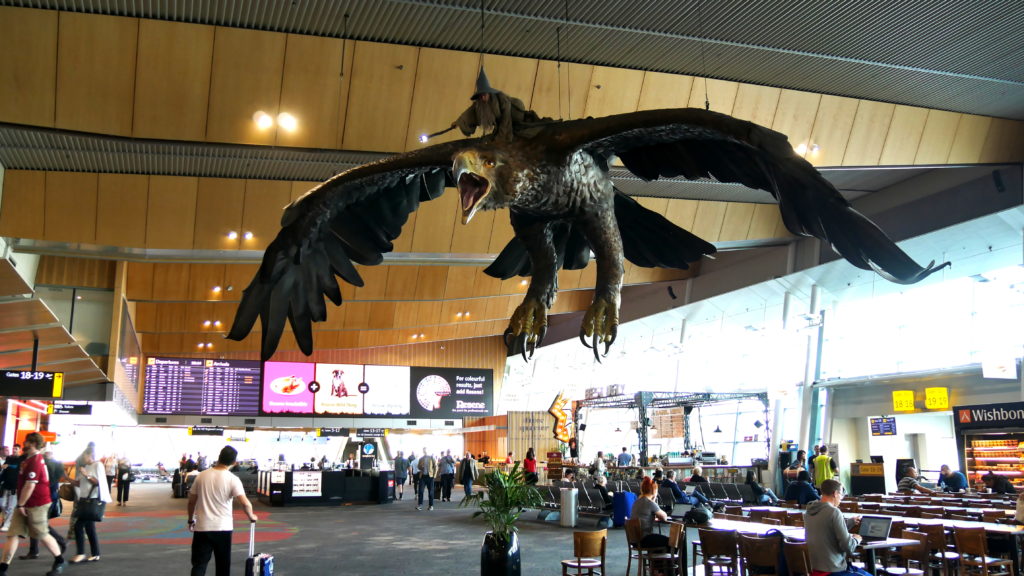 Nach fünf Tagen auf der Nordinsel ging es von Wellington nach Christchurch auf die Südinsel. Wellington als Hauptstadt des Landes, hat nur einen kleinen Airport mit angenehm kurzen Wegen. Liebhaber der Filme „Der Herr der Ringe“ und „Der Hobbit“ werden von diesem Flughafen begeistert sein. Als Reminiszenz an die in den Wellingtoner Filmstudios und auf Neuseeland gedrehten Filme hängen in der Haupthalle des Terminals zwei riesige Adler von der Decke. Auf einem davon reitet der Magier Gandalf durch die Lüfte. Auch der furchterregende Drache Smaug versteckt sich in einer Ecke. Dieser Airport ist durch seine ruhige, entspannte Atmosphäre jetzt einer meiner Lieblingsflughäfen geworden.