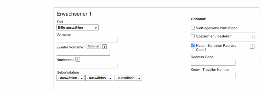 Bei vielen anderen Airlines muss man diese Nummer allerdings individuell bei der Buchung oder spätestens beim Check-In eintragen. Diese Funktion ist manchmal etwas versteckt und oft wird nach einem „Regress Code“ gefragt. Hier kann man dann gewöhnlich auch die Known Traveller Number eintragen, welche zu einem TSA PreCheck auf der Bordkarte führt.