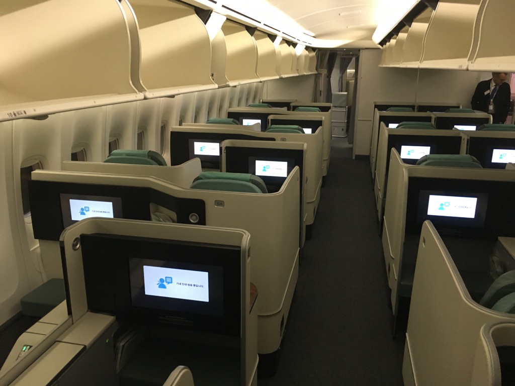 Die Apex Suite, wie sie z.B. Korean Air in der Boeing 747-8 verwendet, wirkt wie ein klassischer Business Class Sitz, aber aufgrund der leicht versetzten Anordnung hat hier jeder Sitzplatz direkten Gangzugang.