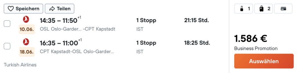 Turkish Airlines Business Class von Oslo nach Kapstadt ab 1.586 Euro | Frankfurtflyer Kommentar