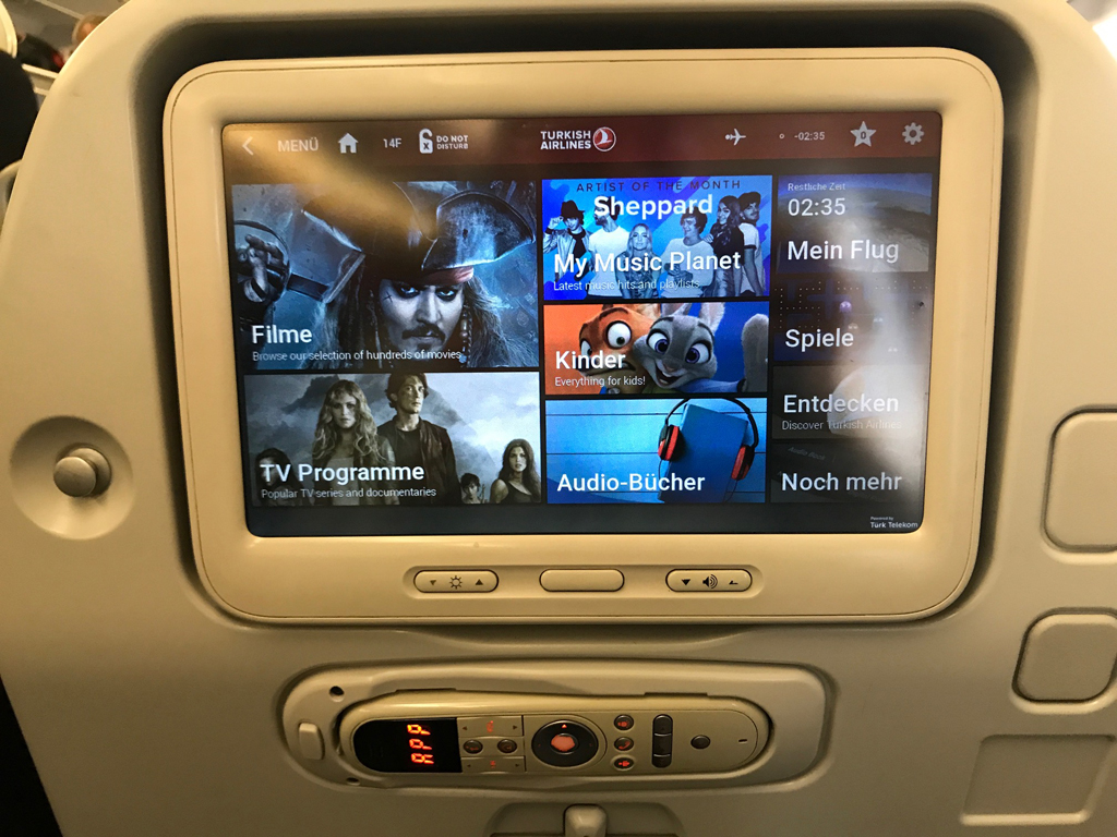 Da auf meinem ersten Segment von Hannover nach Istanbul-Ataturk bereits alle Fensterplätze in den Notausgangsreihen belegt waren, musste ich mit einem „normalen“ Fensterplatz, in diesem Fall 14F, Vorlieb nehmen. Der Sitzabstand war dennoch für die Kurz- und Mittelstrecke in Ordnung.