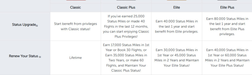 Turkish Airlines Miles and Smiles – Der vollständige Guide: Status-Stufen | Status-Stufen im Überblick