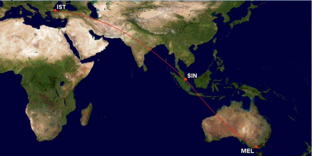 Lange wurde davon gesprochen, dass Turkish Airlines den Flug nach Australien non stop fliegen will und dies ist wohl auch immer noch der langfristige Plan. Zu Beginn sollen die Flüge aber mit einem Zwischenstopp in Singapur geflogen werden, sodass man Istanbul- Singapur- Melbourne fliegen will und hier auch auf der Strecke von Singapur nach Melbourne als 5th Freedom Flug noch Tickets verkaufen kann.