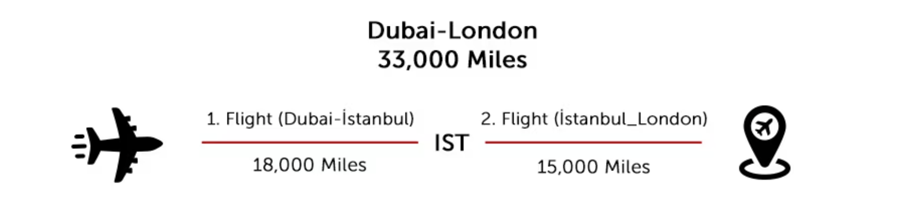 Noch richtet sich der Preis für Prämienflüge nach den einzelnen Zonen. Wer wie in diesem Beispiel von Dubai über Istanbul nach London fliegt, zahlt künftig zwei Mal. Bisher wurde einfach der Preis von A nach B berechnet, unabhängig davon ob und wo der Umstieg erfolgte.