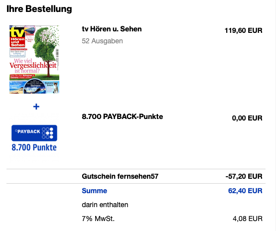 Paybackpunkte für das TV Hören + Sehen Abo ,