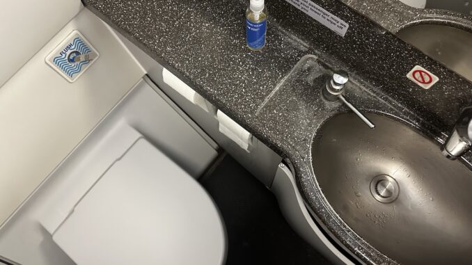 • Ein kurzer Nachtrag: die Toiletten funktionieren bei modernen Verkehrsflugzeugen mir Vakuumpumpen. Es muss einen äußeren Einfluss gegeben haben, der alle gleichzeitig zum Ausfall brachte. Da die Toiletten nach der Landung wieder funktionierten, liegt Eis als Ursache nahe, das heißt eine ausgefallene Heizung. Heizungen sind an vielen Stellen Flugsicherheitsrelevant. In diese Maschine würde ich mich momentan nicht setzen, auch wenn die Toiletten wieder funktionieren