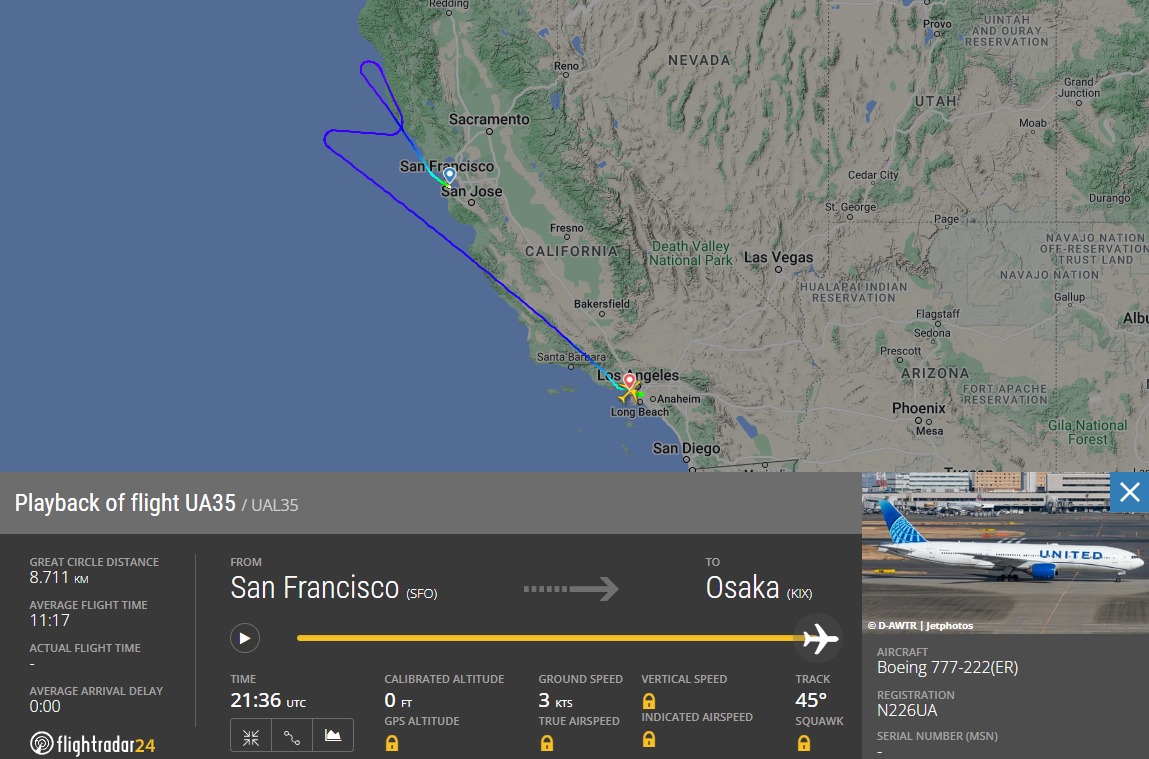 Die Cockpit-Crew bemerkte den Verlust und brach den Flug UA35 ab. Statt weiter nach Osaka zu fliegen, landete die Boeing mit der Registrierung N226UA knapp drei Stunden später ohne weitere Vorfälle in Los Angeles (LAX).