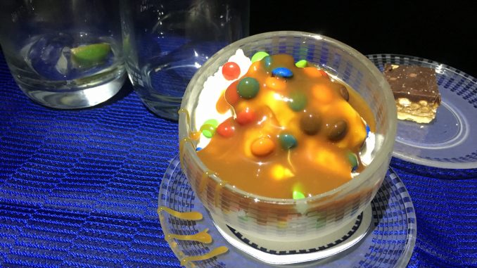 Da nicht jeder regelmäßig mit United oder anderen US Airlines fliegt, hier einmal eine kurze Erklärung: Die drei großen US Amerikanischen Airlines, United Airlines, Delta Airlines und American Airlines servieren seit Jahren auf allen Langstreckenflügen in der First und Business Class sogenannte „Ice Cream Sundae“.
