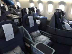 Die in der Boeing 787-8 verbauten Business Class Sitze in einer 2-2-2 Anordnung lassen sich zwar auch komplett flach stellen, allerdings sind sie dem neusten Produkt von United etwas unterlegen. Hierbei handelt es sich aber im wesentlichen um den selben Sitz, welchen auch Lufthansa aktuell in ihrer Business Class verbaut.