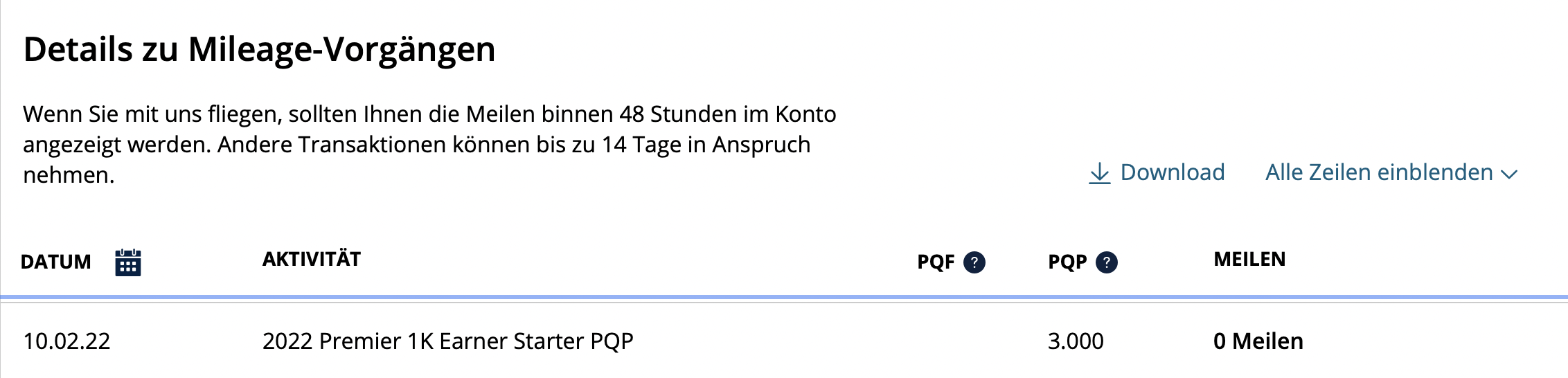 Wer in 2021 seinen Status aus eigener Kraft erreicht hat (unter reduzierten Bedingungen), der hat folgende Anzahl an PQP bekommen: