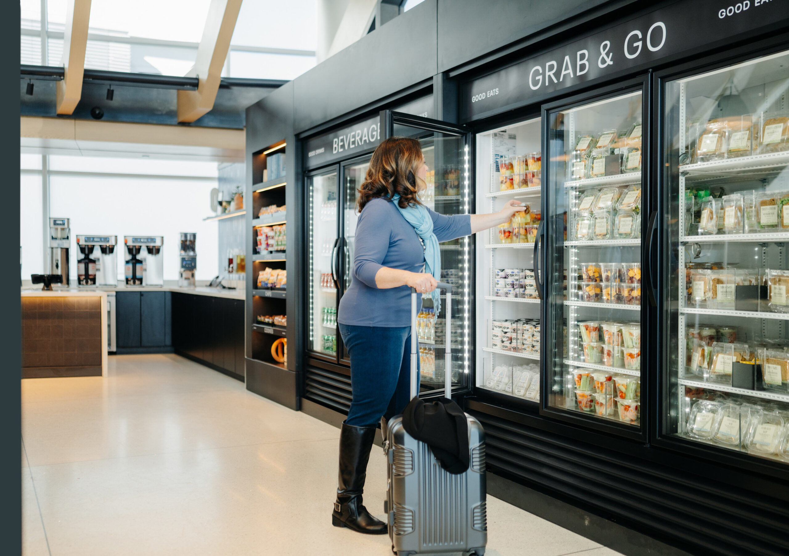 Mit der neuen Take Away-Lounge orientiert man sich genau an solche Fluggäste und bietet „hochwertige Premium-Snacks“, alkoholfreie Getränke oder auch vom Barista gefertigte Kaffeespezialitäten zur Mitnahme. Auch der Standort wurde so gewählt, daß die meisten Passagiere an der neuen Räumlichkeit vorbeikommen. Denver ist eines der großen Hubs von United, das Sortiment wird also auch vielen Umsteigern zu Gute kommen.