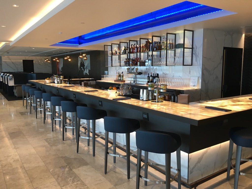 Im Zentrum der Lounge befindet sich die bediente Bar. Hier bekommt Ihr von Barkeepern alles von Softdrinks über Bier, Wein und Champagner bis hin zu Cocktails ausgeschenkt. Die Auswahl an Getränken ist hierbei recht hochwertig und anders als in den United Clubs ist in den Polaris Lounges „Premium Alkohol“ immer kostenlos, um nicht zu sagen, es gibt nur Premium Alkohol in den United Polaris Lounges.