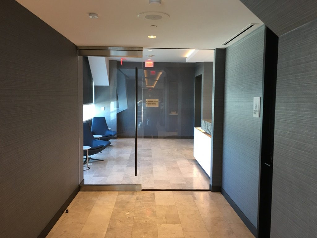 Die United Polaris Lounge San Francisco erstreckt sich über zwei Etagen. Direkt nach dem Eingang befindet sich eine Art Rezeption. Hier werden nur Bordkarten gescannt, als Service Desk soll diese Rezeption nicht dienen, wobei hier auch kleinere Änderungen vorgenommen werden können.