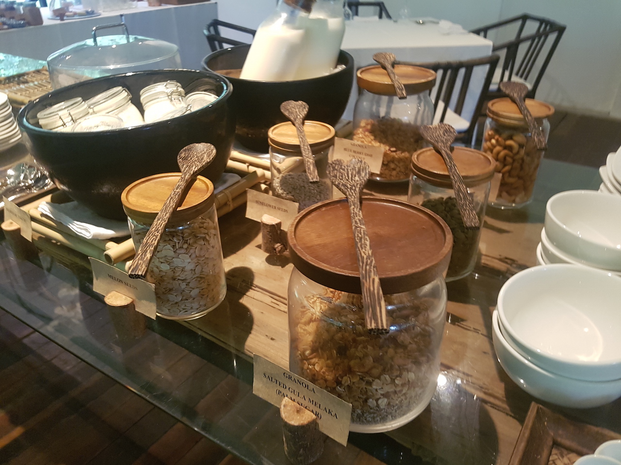 Am Buffet gab es eine kleine aber qualitätiv hochwertige Auswahl an Müsli, Brot und Gebäck, Obst, und einigen asiatischen Gerichten. Alle Säfte wurden frisch zubereitet und dann am Platz serviert. Selbes war auch der Fall für die Kaffeespezialitäten.