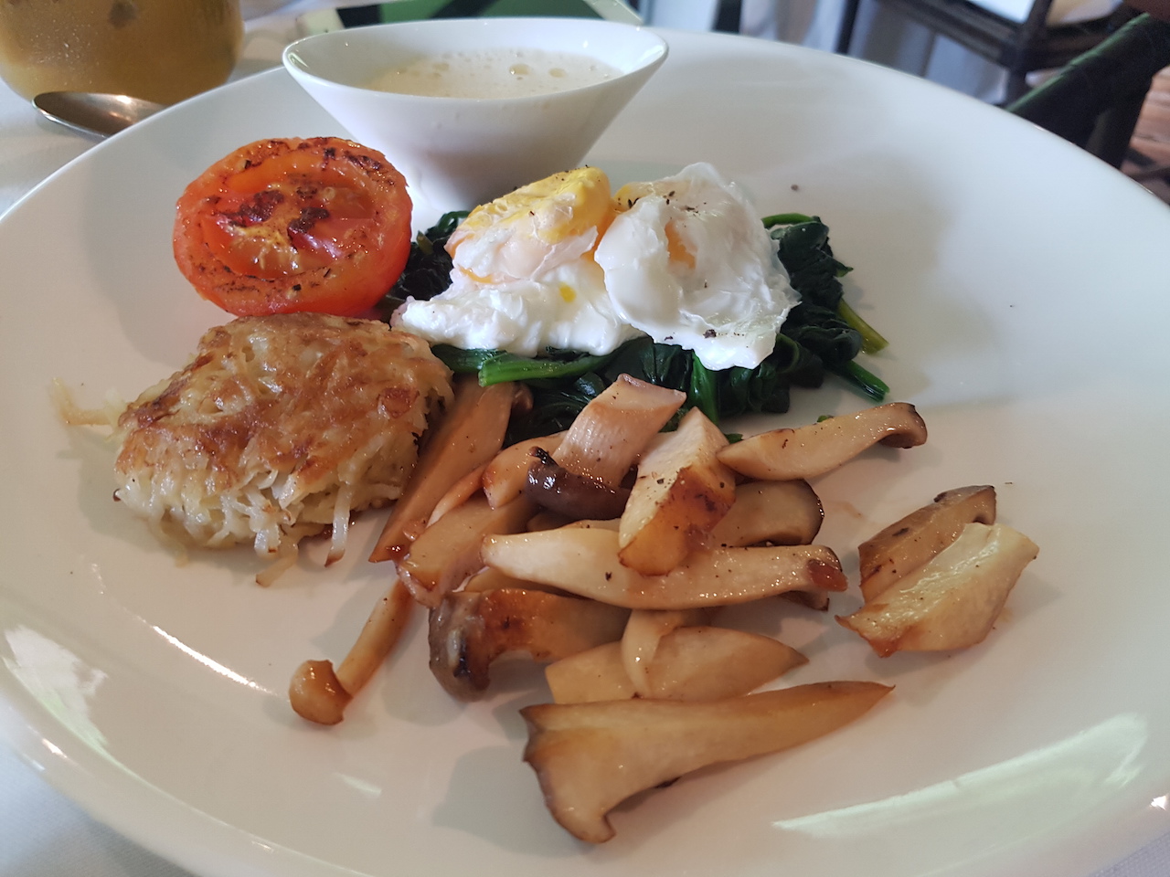 Für mich gab es das Villa Samadhi Spezial. Also poached eggs mit Pilzen, frischen Röstis und Spinat. Von der Qualität her war das Frühstück einfach klasse.