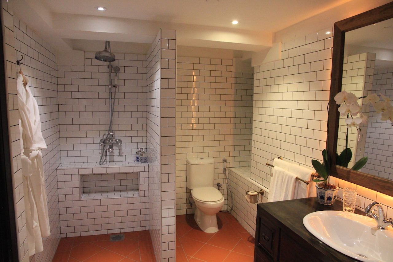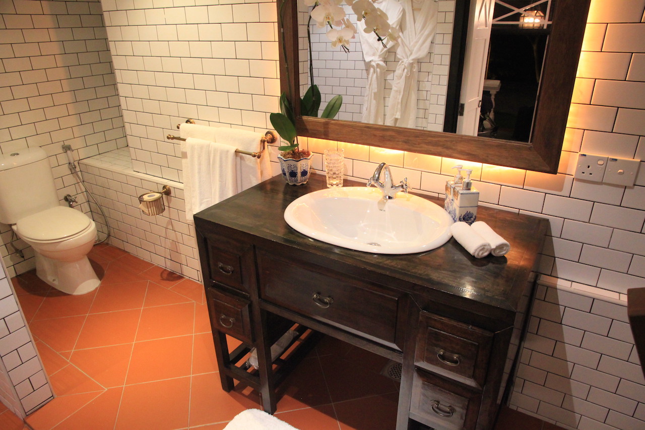 Der große Spiegel mit dem Waschtisch wirkten sehr authentisch und die Orchidee war ein schöner Touch.