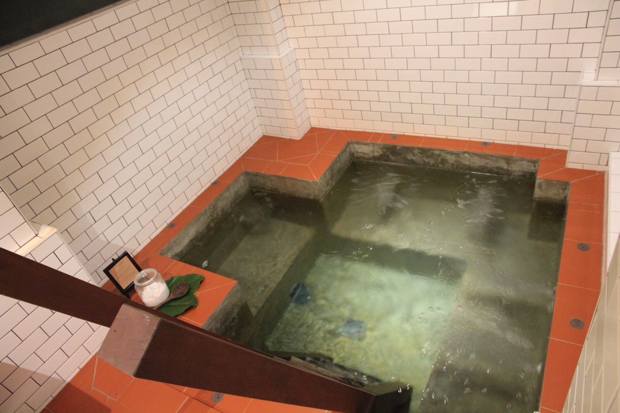 Rechts befand sich jedoch ein großer Jacuzzi in dem man entspannen und zur Ruhe kommen konnte. Zudem gab es noch extra Badesalz welches man nutzen konnte.