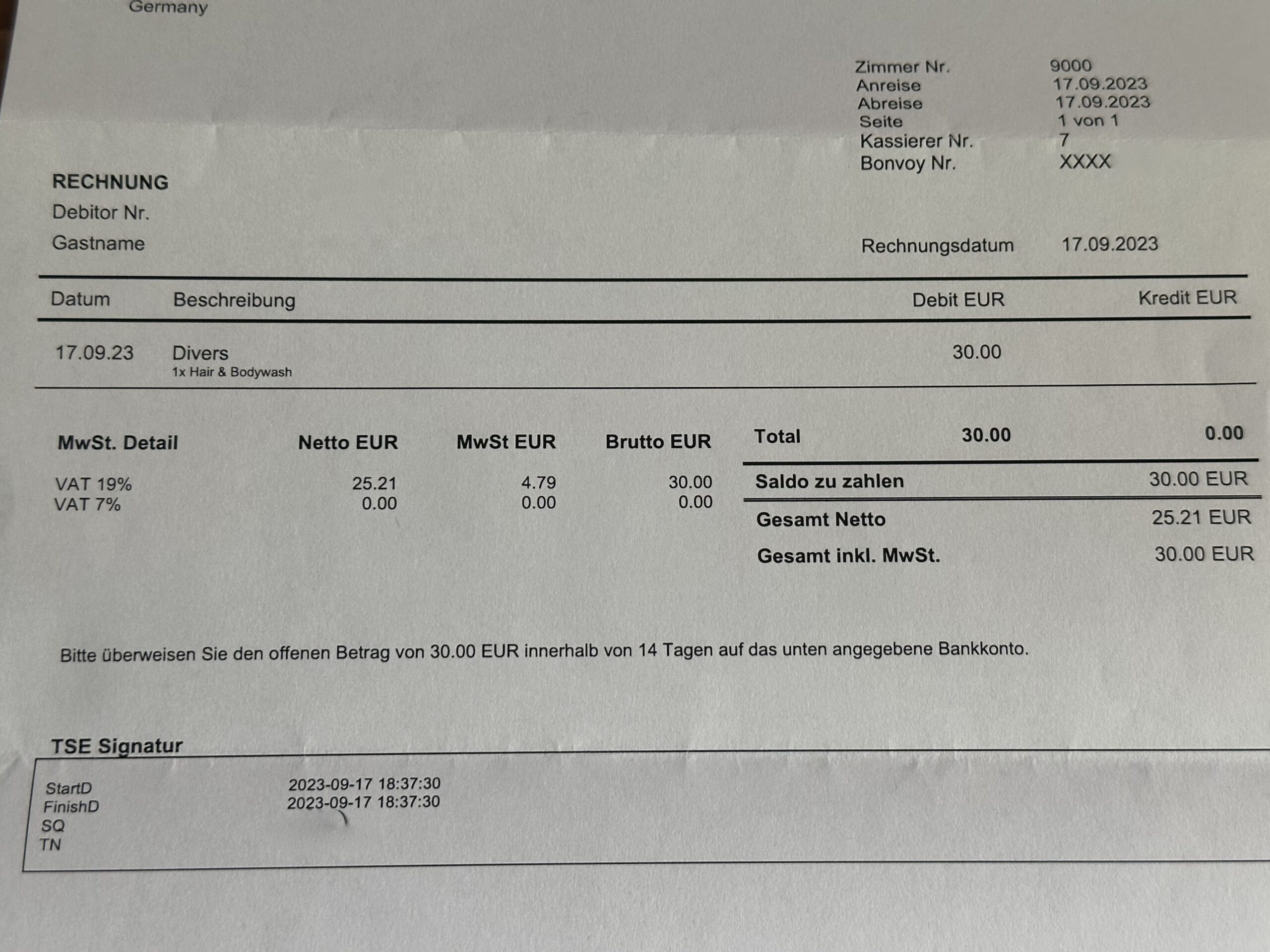 Was ich nicht schon nicht alles in diversen Hotels weltweit auf der Rechnung fand: Das ging vom Wäscheservice [Nastücher + Socken] in den VAE bis angeblich getätigten Telefongesprächen in Südamerika.